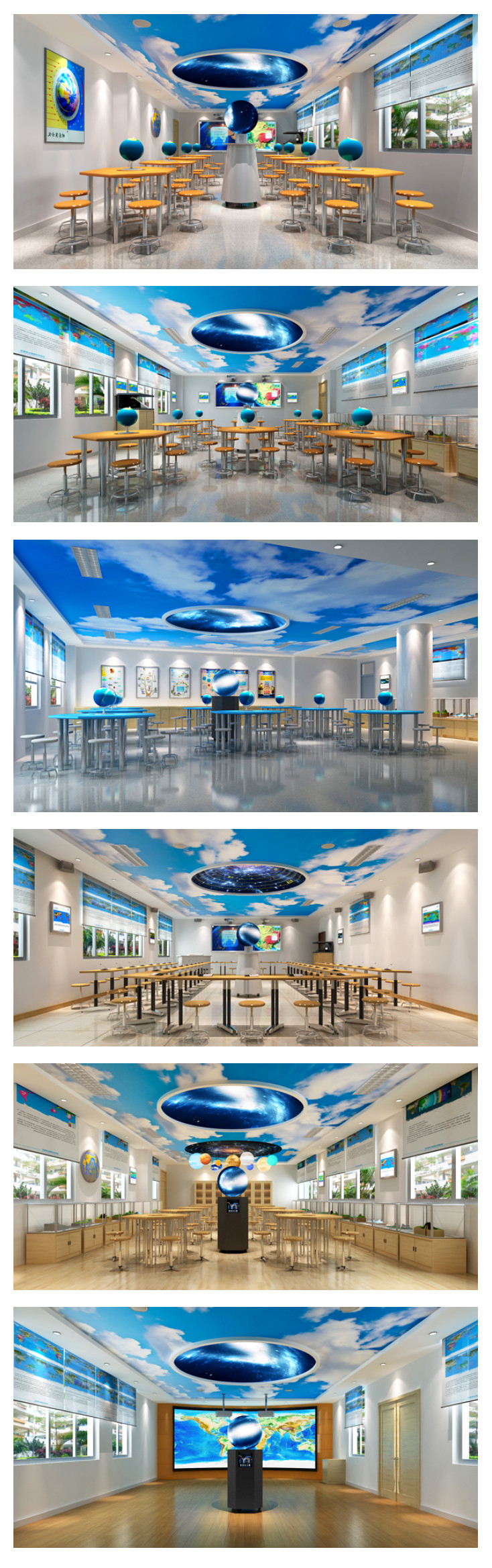 營(yíng)造整體地理學(xué)科環(huán)境氛圍,整體設(shè)計(jì)以教學(xué)為本,配合空間設(shè)計(jì)手法,實(shí)現(xiàn)數(shù)字地理專用教室學(xué)科特色,藝術(shù)特色。